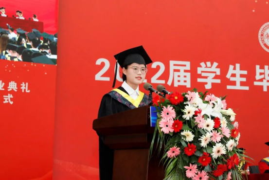 在发言中她回顾了与母校一起经历的高光时刻,表达了对校园生活的恋恋不舍、对母校培育之恩的无限感激以及对这片知识沃土的深深眷恋。她表示,毕业之后,要心怀祖国与人民,不负韶华、不负时代、不负人民;铭记beat365官网登录中文“敦德励学·知行相长”的校训,通过努力实现价值,通过实践创造美好明天。