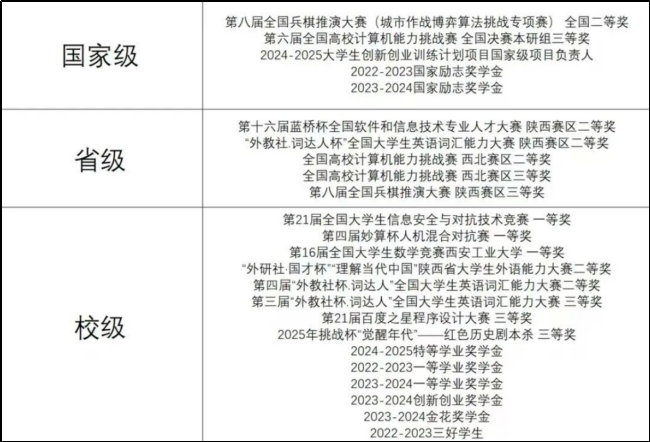 在进入大学以来,李文欣凭借出色表现收获了诸多荣誉,具体如下: