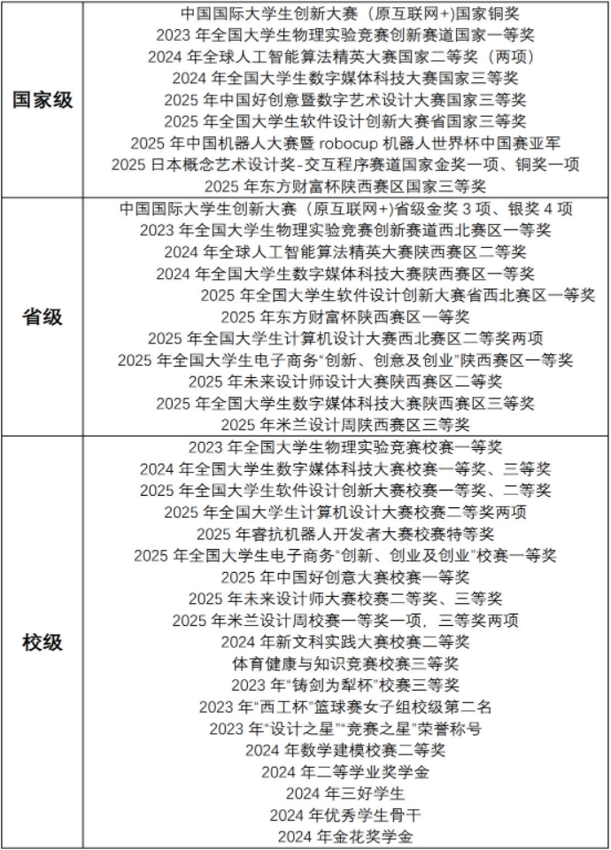 这次经历激发了她进一步参与实践的兴趣。此后,她逐步参与到更具挑战性的技术项目中。她参加了全球人工智能算法精英大赛中获国家二等奖。她在项目中参与部分算法实现和功能测试,初步掌握了模型训练的基本流程。同年,她参与“智援归途——基于地图定位与人脸识别的智能寻人系统”开发,在全国老员工计算机设计大赛中获得西北赛区二等奖,主要协助完成人脸识别模块的测试与优化。通过这些项目,她逐步了解了从需求分析到系统实现的基本开发流程,也在实践中不断提升技术应用能力。这些经历让她逐渐熟悉了从需求分析、技术选型到系统实现的完整开发流程。