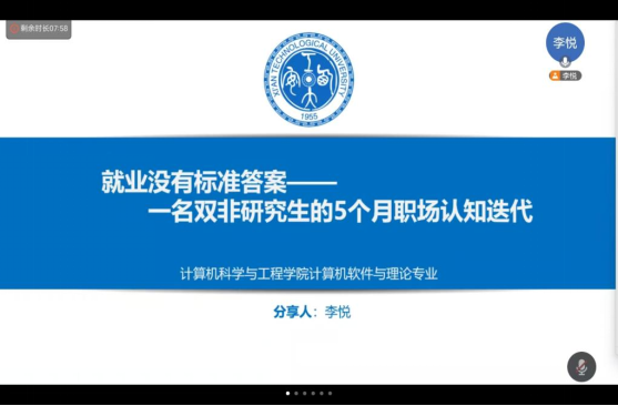 2025年5月30日,为了帮助计算机专业的党员同学更好地完成学业并明确未来的就业方向,研究生第一党支部开展研究生就业分享会。会议由23级研究生李悦同学以“直面就业挑战,探索职业新赛道”为主题,结合自身5个月的实习经历与行业观察,为同学们带来了一场干货满满的就业经验分享会。