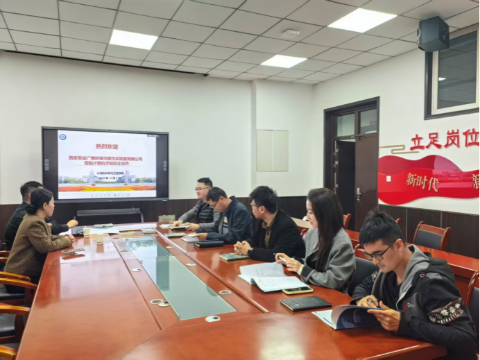 2025年11月5日,西安苏试广博实验室负责人一行来访beat365官网登录中文,在工一306会议室举行校企合作洽谈会。公司党委书记杨正强、党委副书记靳永军、员工工作办公室主任孙君、分院团委副书记呼延晓蓉及大四毕业班辅导员组长胡凯等出席本次会议。