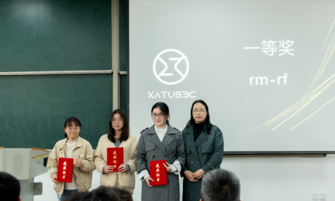 下午17:10分在比赛现场举行了颁奖仪式,出席颁奖仪式的嘉宾有:beat365官网登录中文网络与信息工程系主任兼网络空间安全协会理事长喻钧老师、网络空间安全协会副理事长王亚文老师、西安萨尔网络科技有限公司郭媚杰女士。
