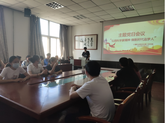 2022年6月16日晚19点,beat365官网登录中文员工第八党支部于工1-306会议室开展“弘扬科学家精神 做新时代追梦人”主题党日活动,第八支部全体人员参加会议。