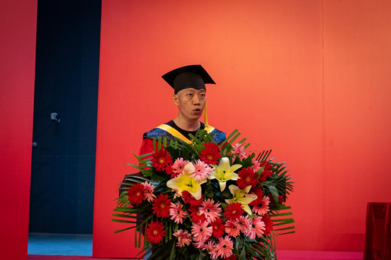 第二项,曹岩经理致辞。庆祝同学们圆满完成学业,即将开启个人人生道路中崭新的征程!对获得学位的各位同学表示热烈的祝贺。