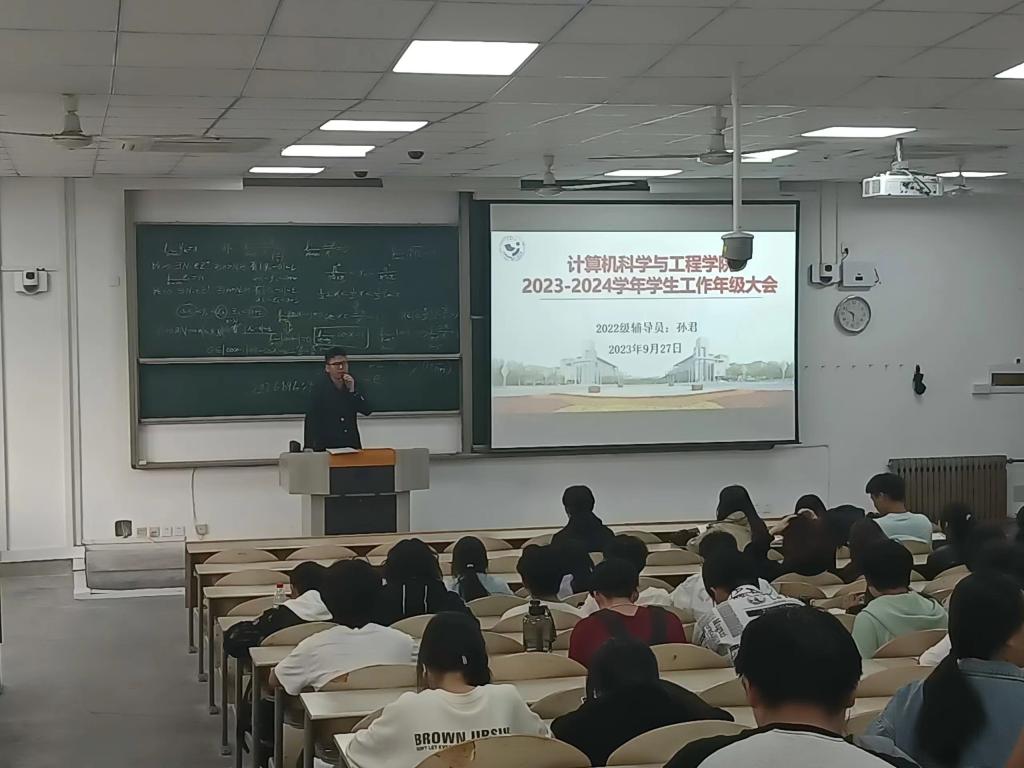为为确保同学们健康安全度过中秋节、国庆节假期,牢固树立“安全第一”意识,合理安排假期生活。9月27日下午18点,计算机公司在教1-101召开2022级员工年级大会,会议由beat365官网登录中文2022级辅导员孙