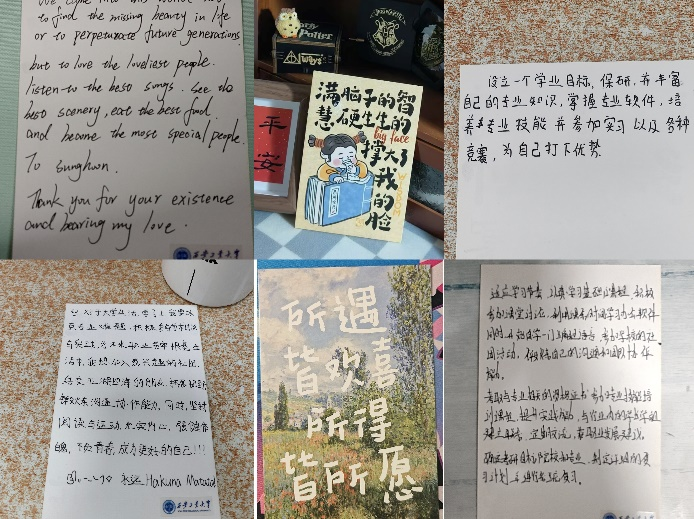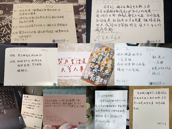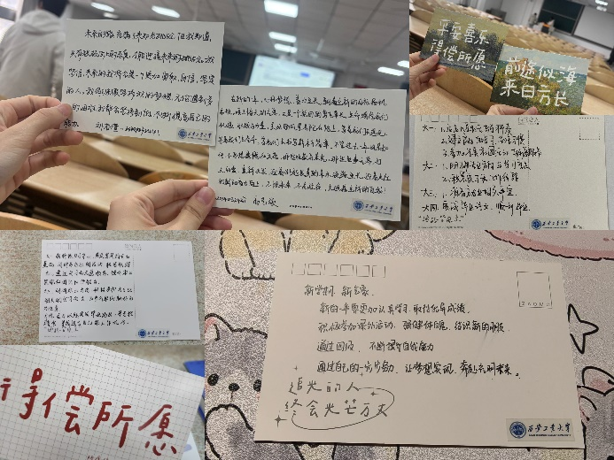通过这次活动,同学们对个人的学术、职业以及生活做出了细致规划,书写了对未来的信心和期待,还提醒彼此:无论挑战多大,只要坚定目标,未来就一定会更加精彩!让我们一同珍藏这张明信片,让它成为激励我们不断前行的力量源泉,迈向更加辉煌的明天!
