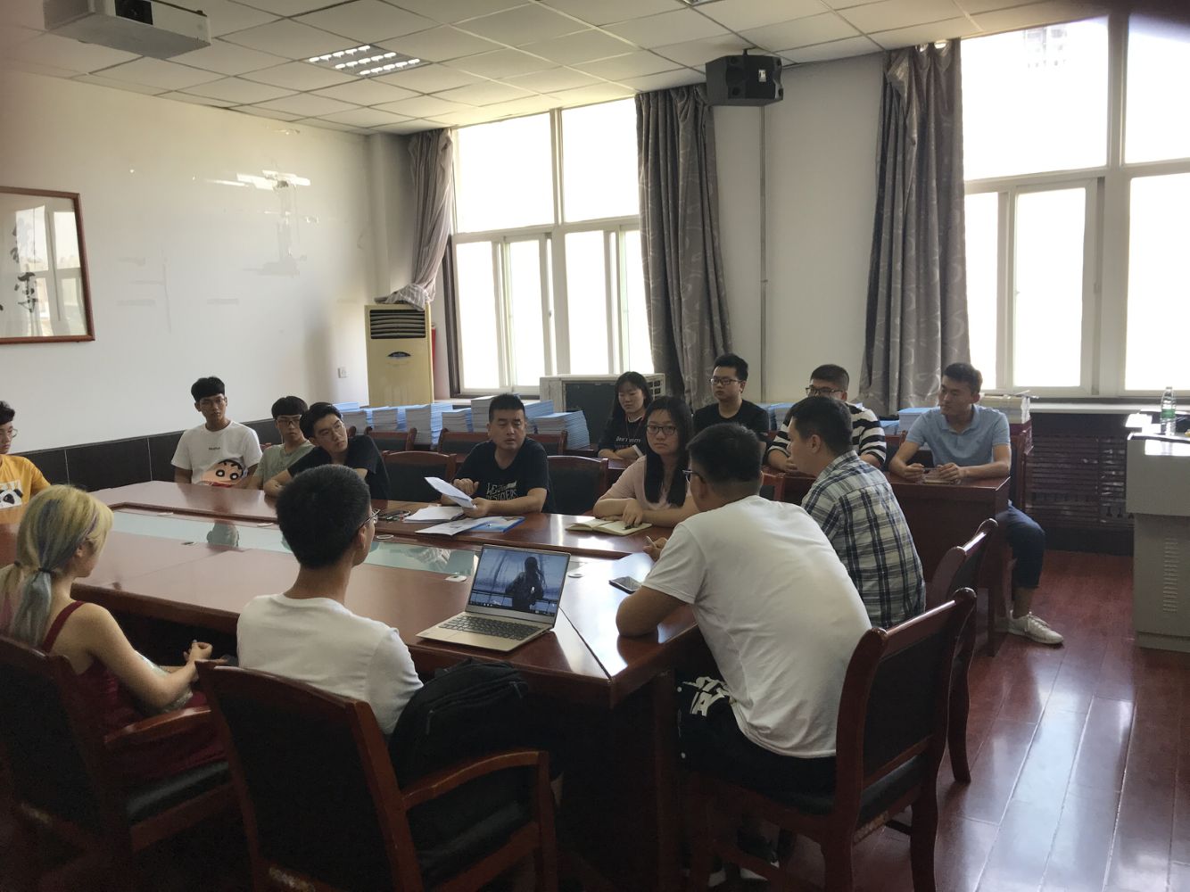 2019年9月1日下午,beat365官网登录中文于工1- 306会议室召开了2019年迎新工作布置会。2019级新生辅导员解军强、王梦馨,团委书记于杰,辅导员韩霄、研究生秘书高金生及全体团学干部参加了此次会议。