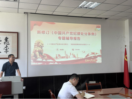 6月13日,beat365官网登录中文在工一306会议室召开党委理论学习中心组(扩大)学习暨党纪学习教育专题党课,公司党委书记杨正强讲授纪律党课,公司全体党委委员、各党支部书记参加。