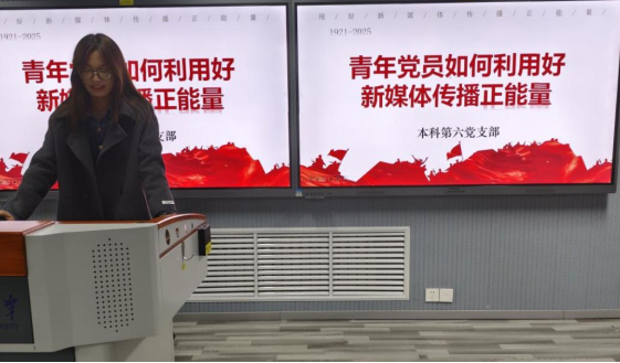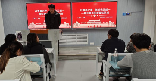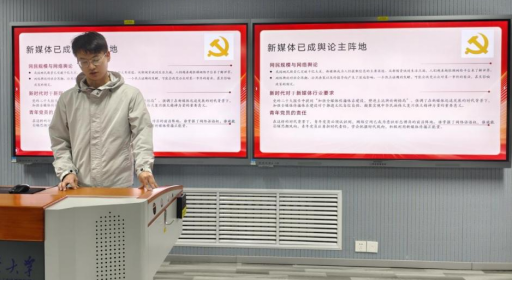 研究生第三党支部王晓峰同志则聚焦“角色转型与实践路径”,引用习近平总书记“谁掌握了互联网,谁就把握住了时代主动权”的重要论述,通过贵州青年党员陆遥修复戈壁航标、人大博士生宋扬直播助农等案例,强调传播需“扎根实践、聚焦真实”,既要用短视频、直播等青年化形式讲好故事,更要严守党纪法规,以理性态度应对网络舆情。