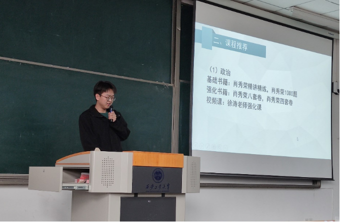 第三位分享者是公司2019级软件工程专业员工杜佳佳,他为同学们进行考研经验的分享,他分别从政治,低投入高回报地学习;英语,背大作文,小作文,十篇凑一篇;数学,复习容易焦虑,我们要走质不走量,要会;专业课,参考王道考研课程学习等多个角度全方位地指出自己的经验教训,分析考研形势,引导方向,做出建议,使同学们对考研过程有了一个更具体、更清晰的认识,帮助以积极乐观的心态和良好的方法迎接考研这一巨大挑战,扫除沿途障碍,一战成硕!